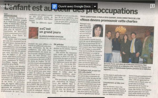 Le volleyball veut être un exemple à suivre