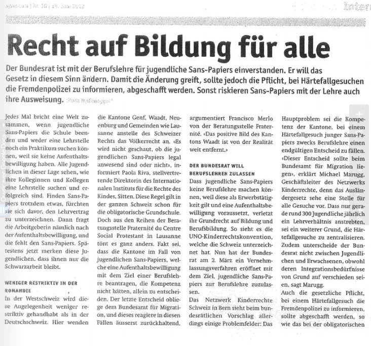 Bulletin des droits de l’enfant Suisse – 18.06.2012